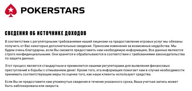 Пару дней назад на GipsyTeam появился пост Влада verhovniy, у которого заблокировали аккаунт на PokerStars с $4,000 в кассе. Его случай очень похож на те, о которых мы недавно писали: служба безопасности запросила пакет документов, в том числе подтверждающих источники дохода. С последним возникла проблема: Влад профессионально играет омаху на Покердоме, и распечатка поступлений кэшаутов на банковский счет Старзы не удовлетворила. Аккаунт, заведенный более 10 лет назад, заблокирован, деньги заморожены.