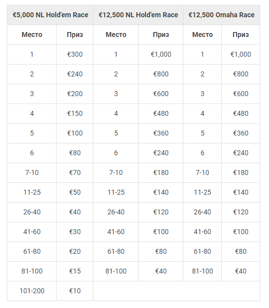 1️⃣ €5,000 NL Hold'em Race - Низкий: €0.05/€0.10 - €0.25/€0.50