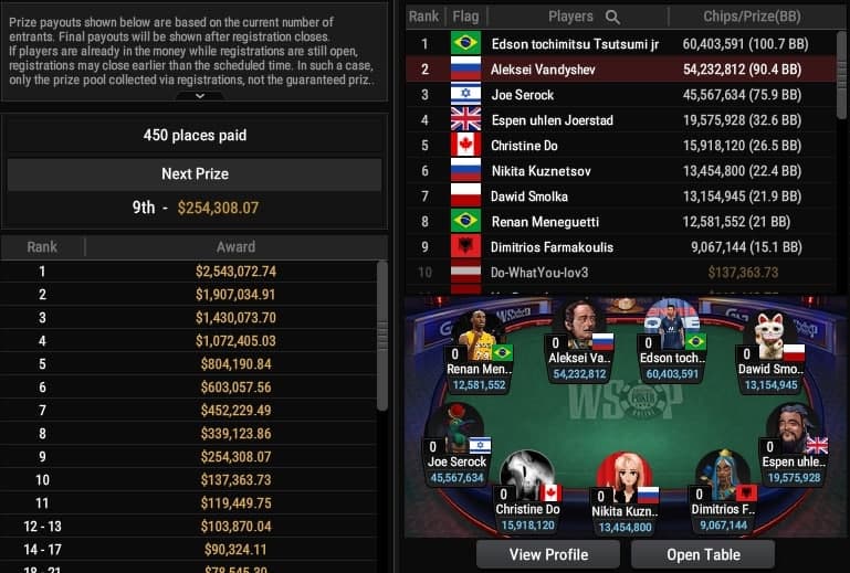 WSOP Online: 2 российских рега на финалке главного турнира