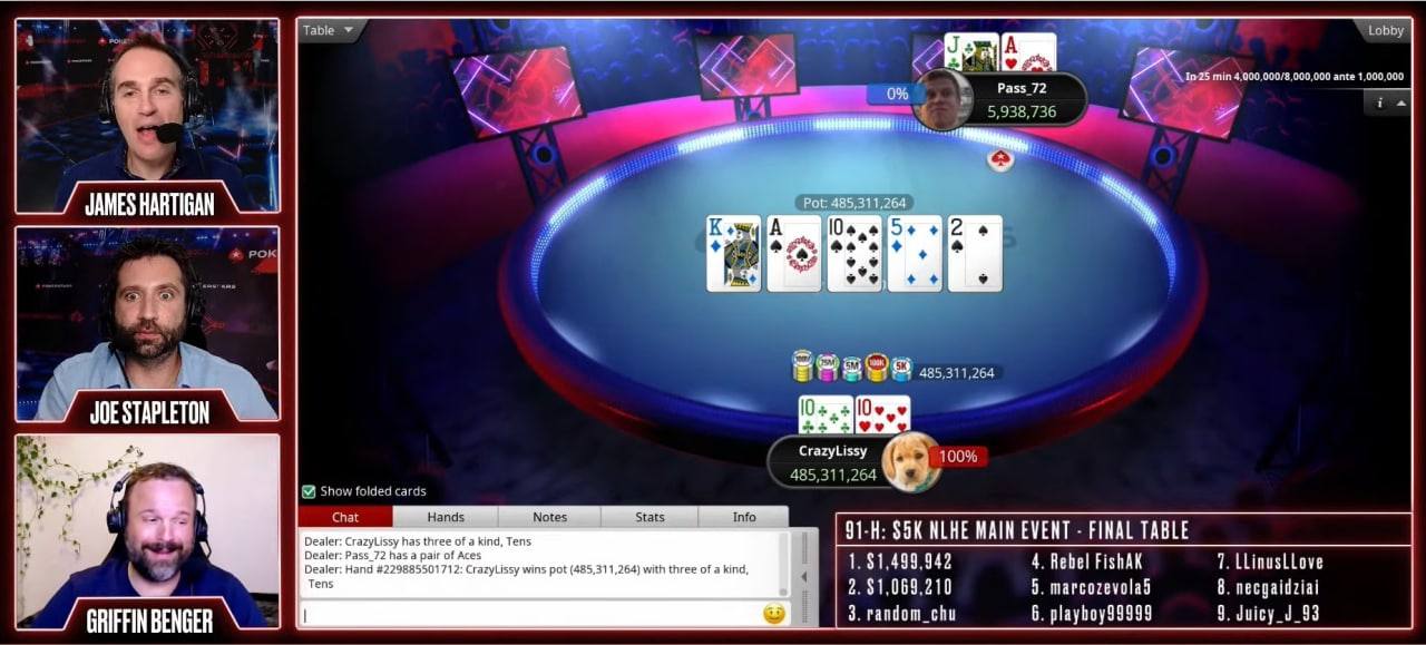 Прямой эфир: Артур Мартиросян в финале partypoker MILLIONS Warm-Up