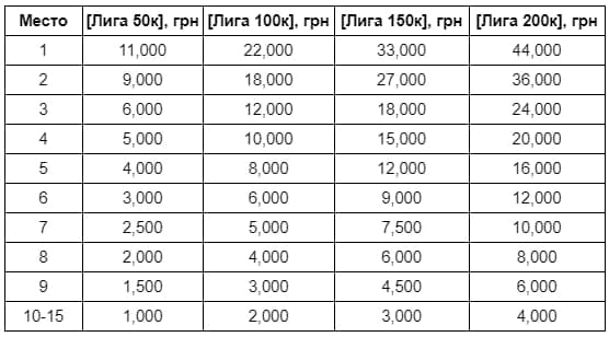 За каждую гривну рейка в лидерборд начисляется 1 очко (на 50/100 грн и выше - 2 очка).
