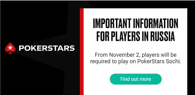Со 2 ноября 2021 года все игроки из России смогут играть только в клиенте PokerStars Sochi! Звучит серьезно, но по факту ничего не поменяется: достаточно скачать клиент и зайти по существующему логину и паролю. Россияне останутся в общем пуле с тем же расписанием турниров и глобальными акциями PokerStars.