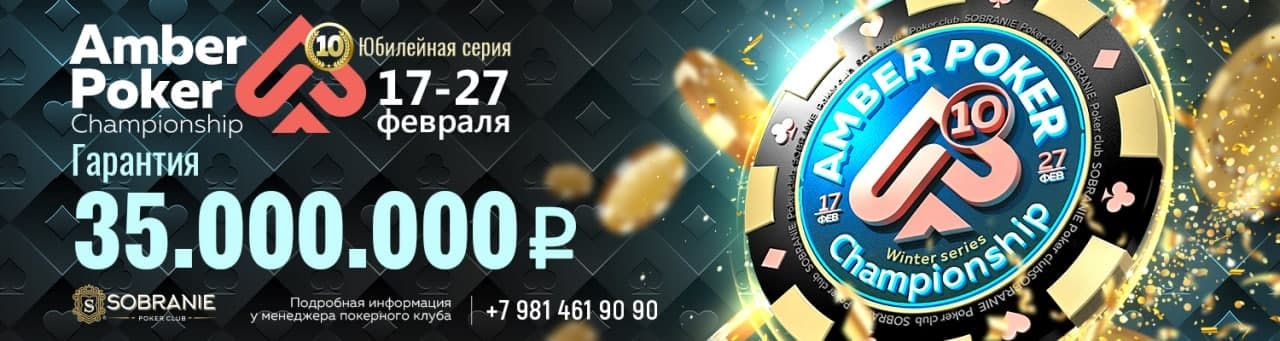 Первая покерная серия года в самой западной игорной зоне России! Повод грандиозный: с 17 по 27 февраля в казино SOBRANIE в юбилейный, десятый раз, пройдет фестиваль Amber Poker Championship. Призовой фонд повторит рекорд в 35,000,000 рублей, причем бай-ины в турниры по сравнению с прошлым этапом снижены.