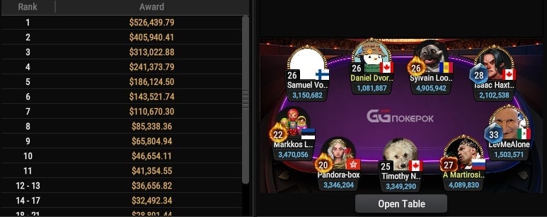 Со вторым стеком игру продолжит Артур Мартиросян. 24-летний россиянин по статистике попадает на финалку этого турнира примерно каждый третий раз, на GG у него больше $21 млн призовых. Чиплидером начнет Сильвен Лусли — чемпион двух хайроллерских турниров EPT и финалист WSOP Main Event 2013 года (4 место, $2.8 млн). Со стеками поменьше в борьбу вступят Сэмюэль Вусден (он же легендарный €urop€an), Даниэль Дворесс и Айзек Хэкстон, который выиграл Super MILLION$ 3 недели назад. На пути к этой финалке Хэкстон патронов не жалел: успех ему принес пятый вход 🙈