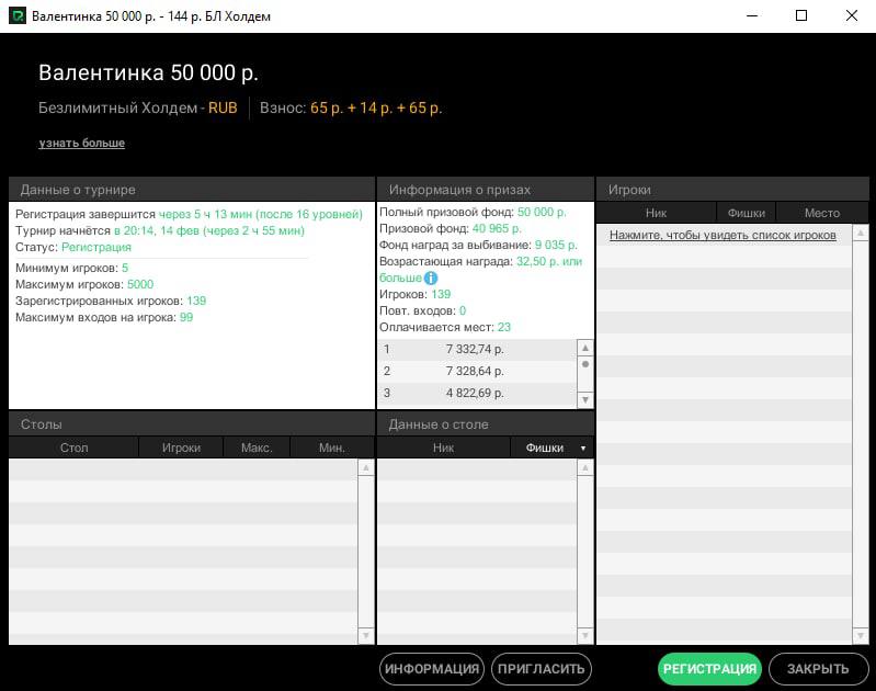 50 лучших выиграют турнирные билеты стоимостью €1 - €100 (действуют 2 месяца). Чтобы очки шли в зачет, нужно подтвердить участие в клиенте.