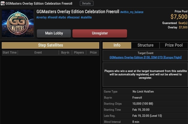 Сами GG уверены, что 36,000+ входов набрать не получится — и даже назвали турнир GGMasters Overlay Edition. Всего на 20 марта запланированы 3 флайта — «Азия», «Европа» и «Америка» (15:00, 20:00 и 01:00 понедельника соответственно). Объединенный день 2 начнется 21 марта в 20:00.