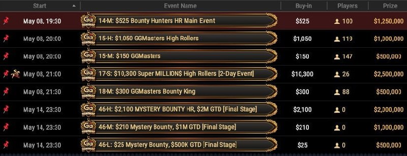 🏆 В главном турнире разыграют $8,000,000, билет обойдется в $1,500. В расписании пока только финальный день - 29 мая в 23:30 по Москве, флайты в ближайшее время появятся в лобби.