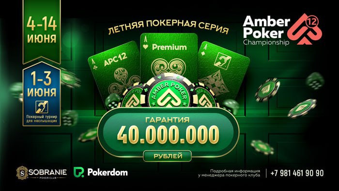 ☀️ По 2 билета на Pokerdom Cup (бай-ин 20,000 рублей) и Kaliningrad Cup (22,000) разыгрывают в сателлитах 7,8,14 и 15 мая в 22:00 по Москве. Участие бесплатное, для получения билета нужно связаться с организаторами серии по номеру +79814619090 и назвать свой аккаунт.