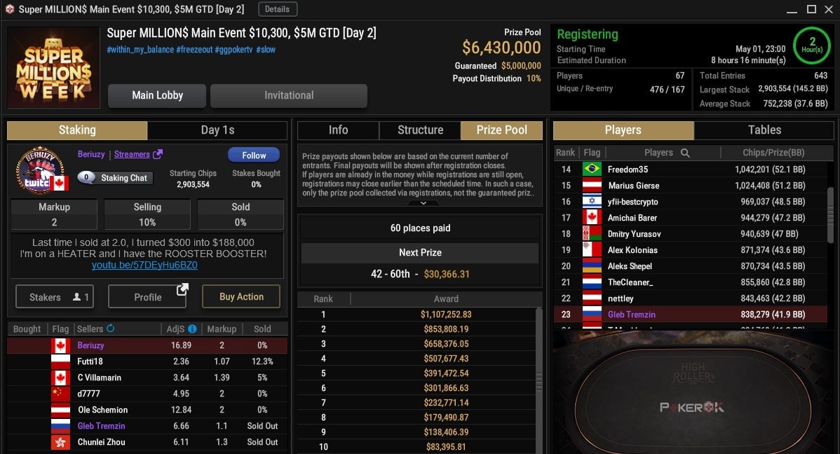 Состав что надо: в первую очередь стоит отметить Патрика Леонарда среди чиплидеров. Наконец-то на его игру можно будет посмотреть вживую, а не обсуждать раздачи, которые он выкладывает в твиттер! Падс продал 20%, из них 14% забрал Федор Хольц. Также на финалке сразу трое русскоговорящих игроков: Андрей Новак, spaise411 и Александр Шепель, который в этом году тащит все турниры, в которые садится. Масштаб апстрика можно оценить в его недавнем интервью фонду MVP.