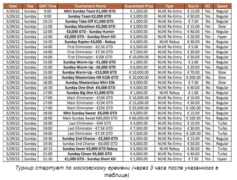 В следующее воскресенье, 29 мая, на RedStar Poker дарят призы за игру в турнирах с приставками “Sunday” и “Eliminator”.