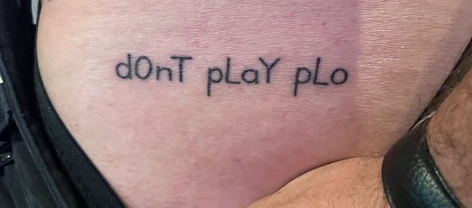 Несколько часов играли в холдем. Потом кто-то предложил круг омахи, все были за, только один игрок не хотел, но в итоге неохотно согласился. Он проиграл стек в первой же раздаче, а потом встал и показал всем свою татуировку с надписью «Не играй в PLO».