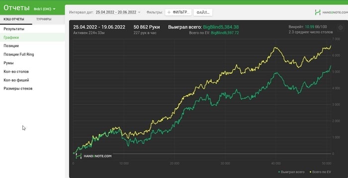 🧑🏻💻 Победить даунстрик и начать разрывать средние лимиты герою помог селект. А процент отыгранных раздач против фишей стал главным критерием для оценки каждой сессии. Он даже почти перестал отмечать раздачи против регуляров, чтобы не отвлекаться от действительно важной работы — разбора рук, сыгранных с любителями.
