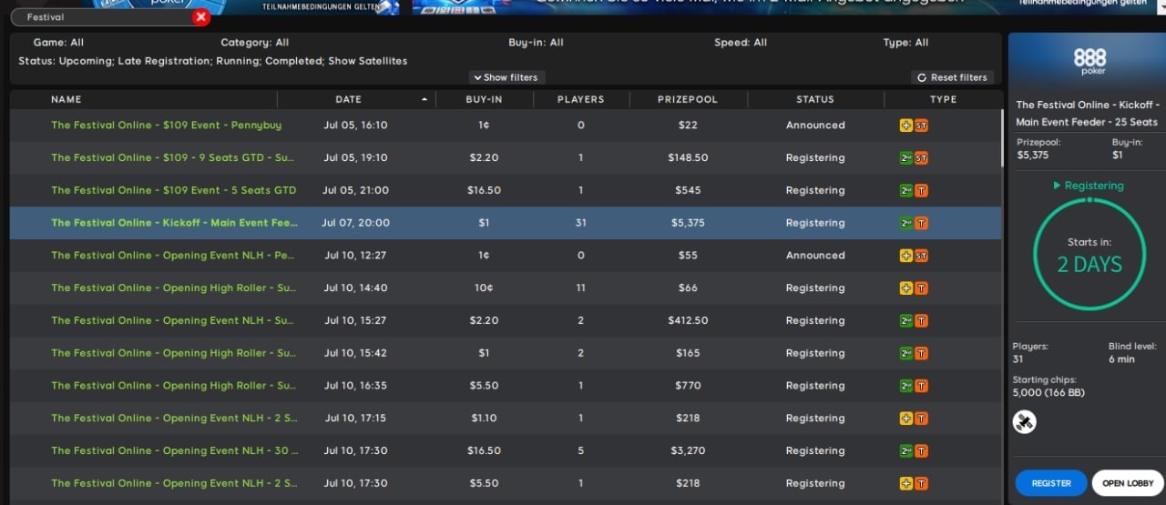 Сегодня начинается серия на 888poker. Первый турнир — большой сателлит на главный турнир за $1