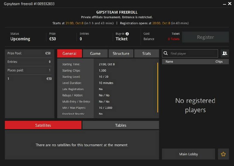 Чтобы принять участие в турнирах, нужно зарегистрироваться в разделе покер-румов. Присоединяйтесь!