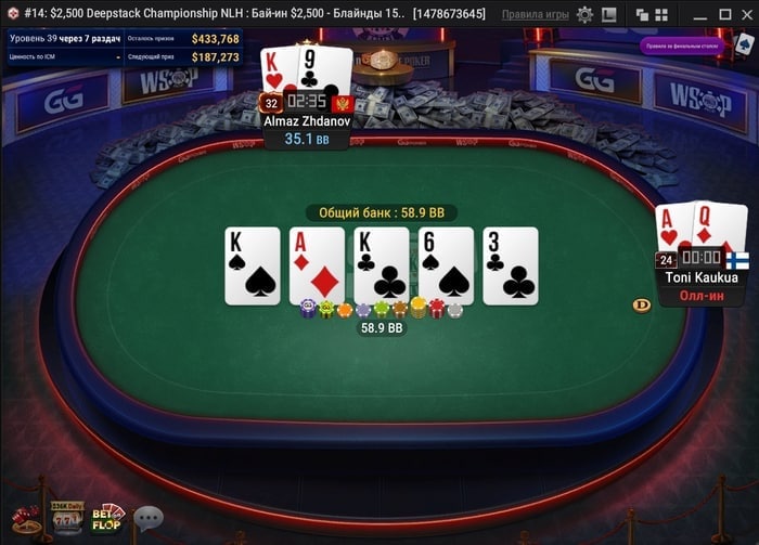 👍 Как агрессивная игра приносит прибыль? Поле в среднем играет слабо и пассивно. Маньяк рейзит много, но его особо не трибетят. Стилит блайнды, ему отдают. Баррелит на постфлопе, его не чек-рейзят. Люди в турнирах зажимаются и не готовы рисковать большой частью стека, что отлично работает на маньяков. А если игрок еще и умный, то он сможет также много добирать с сильными руками, пользуясь имиджем.