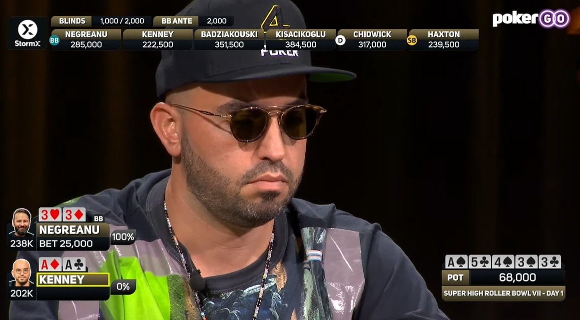 Судьбу Даниэля и Никиты определила одна эпичная раздача. Бодяковский в ней проиллюстрировал поговорку «пас деньги спас»: он довольно долго думал, стоит ли заходить под рейз Брина Кенни с симпатичной рукой 67s. В итоге выкинул: на терне Никита собрал бы натсовый стрит и мог много с ним проиграть. Потому что рука не сгодилась бы: Негреану заплатил флоп с гатшотом, а к риверу вытянул из колоды две волшебных карты. Брин собрал натсовый фулл на тузах, но и этого не хватило для победы. «Покерные боги наказали Кенни», — развел руками Джо Инграм 🤷♂️