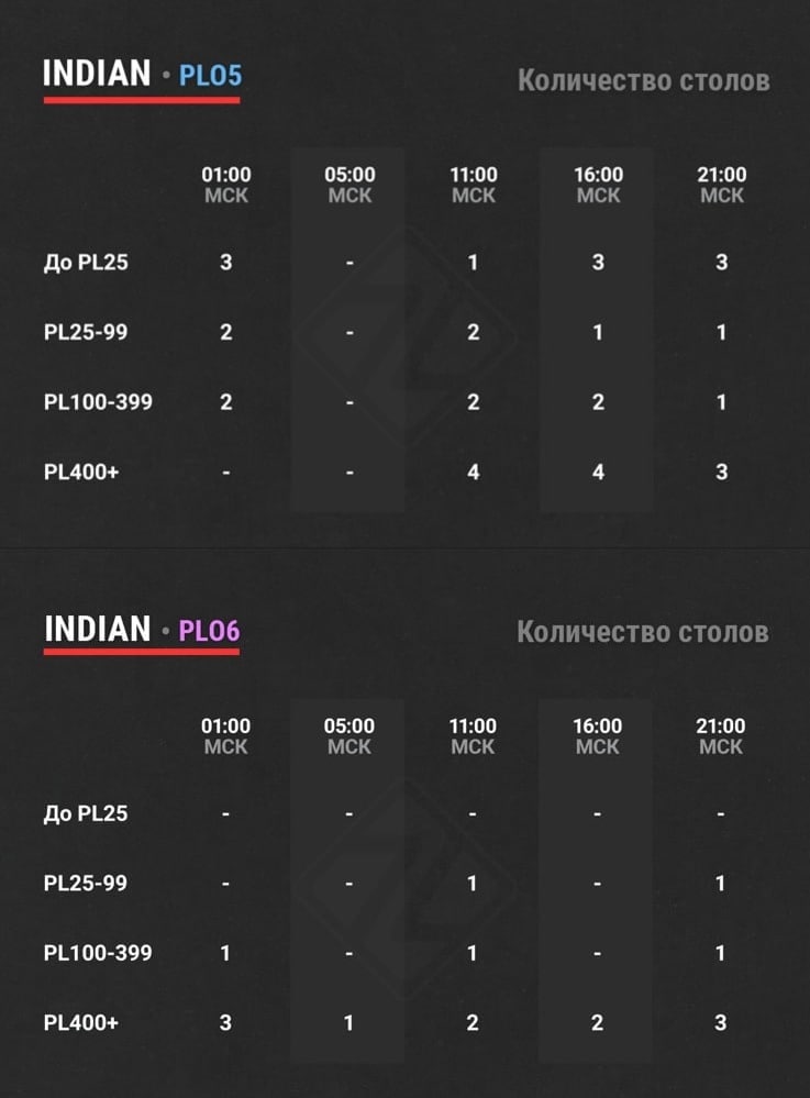 🇮🇳 INDIAN. Сразу несколько новых клубов из Индии, где играют омаху с 5 и 6 картами. Первую — дешевле, на лимитах от PL25 до PL600. Вторую дороже, вплоть до PL1K. Пик трафика — вечером и ночью по Москве. Рейкбек – до 45%.