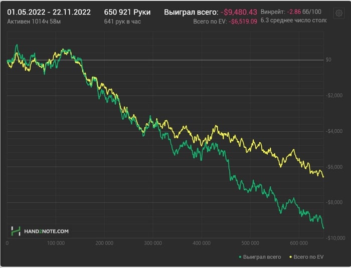 🤬 Лучшим в Лиге местных стал известный гриндер Ireful. Он в нереальном даунстрике: проигрывает на дистанции в 700,000 рук несмотря на работу над игрой и жесткий селект. Пожелаем автору сил и удачи! Второй призер Лиги, OGamee, тоже победил в Битве Блогов, выкладывая трагические графики. Несмотря на самый жесткий стрик в карьере, он все же умудрился вывести ноябрь в плюс, вовремя подключив столы сети Chico.