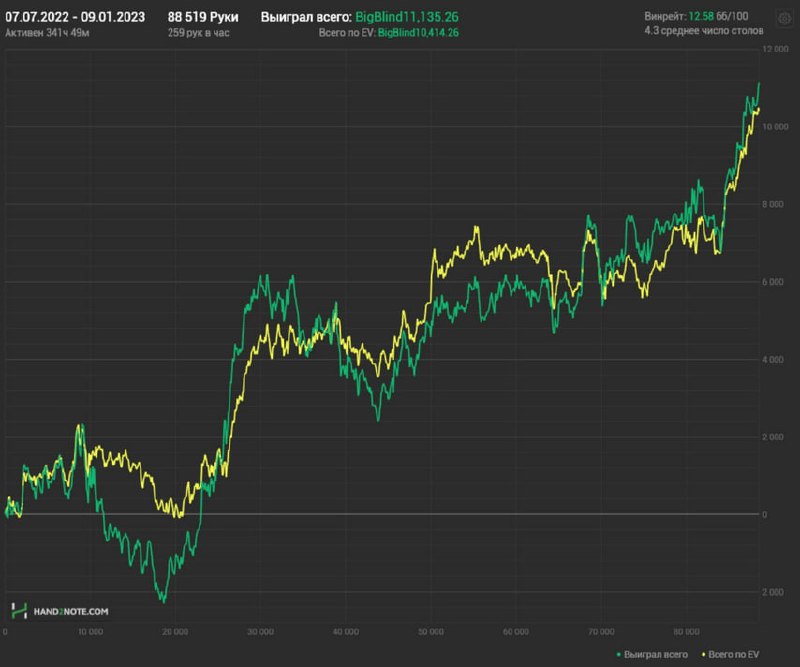 ☝️ Играйте меньше столов, если не хватает времени обдумать раздачу или написать нотс после шоудауна.