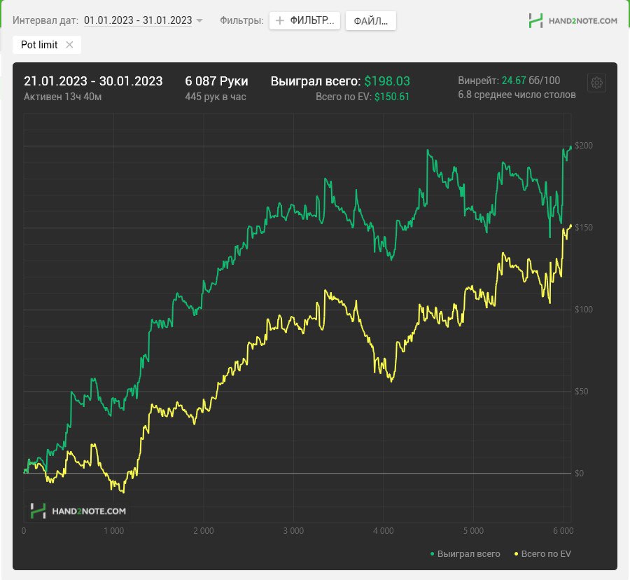 💪 Стефан и Лимитлесс в топ-10. Участники легендарной дуэли отлично провели январь. Виктор заработал $444k, Стефан — $192k. На пятой строчке по профиту на GG загадочный Артем Маркин: он заскочил на 383 раздачи и ушел с профитом $262k, это 188 ББ на 100 рук. Имя решительно не гуглится.