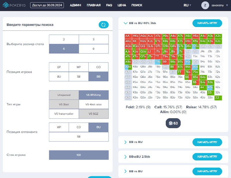 👍 FreeBetRange. Конструктор префлоп-диапазонов и тренажер для их изучения. Прямо в браузере можно строить диапазоны с помощью удобного и интуитивно понятного редактора. Позволяет проверять ответы на точность, а также повторять упражнения и отслеживать свой прогресс. Доступен импорт из Флозиллы и солверов.