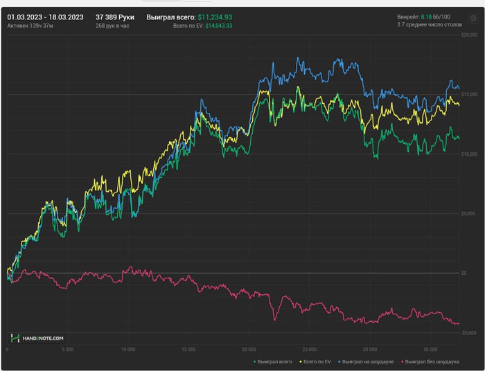 🤷♂️ Марафон Venividi1993 всё. Точнее, он перенес его в сеть WPN – с ходу побить рейк на GG оказалось не под силу даже топ-регу PLO. К тому же рум заботливо на время заблокировал его аккаунт из-за больших проигрышей. А как оптимистично все начиналось!