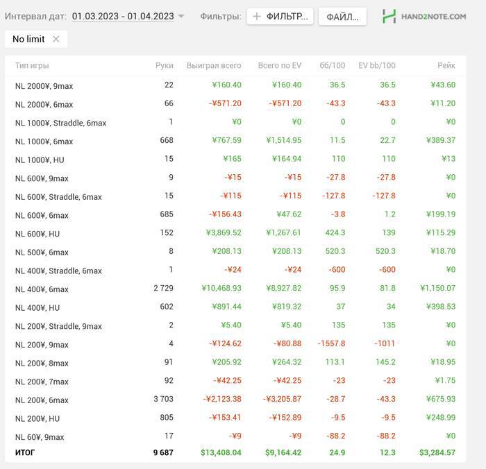 💪 Анвар Муратов разорвал GG. Большую часть месяца в руме был бойкот игроков хайстейкс, так что в топе много новых имен. В апреле Анвар сыграл 3,752 раздачи и заработал $113k ($85.5k по ожиданию). Анвар, судя по быстрому рисерчу на GipsyTeam, любит поиграть и в офлайне: например, в прошлом году был на серии SPF в Сочи.