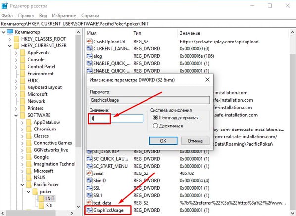 2️⃣ Перейдите по адресу HKEYCURRENTUSER\SOFTWARE\PacificPoker\poker\INIT