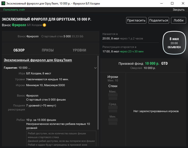Если вы не в России, то фрироллы найдете и на PokerStars, и на partypoker, и на 888poker — полное расписание смотрите на GipsyTeam. А подборки турниров и пароли на фрироллы — в нашем отдельном телеграм-канале. Желаем удачи!