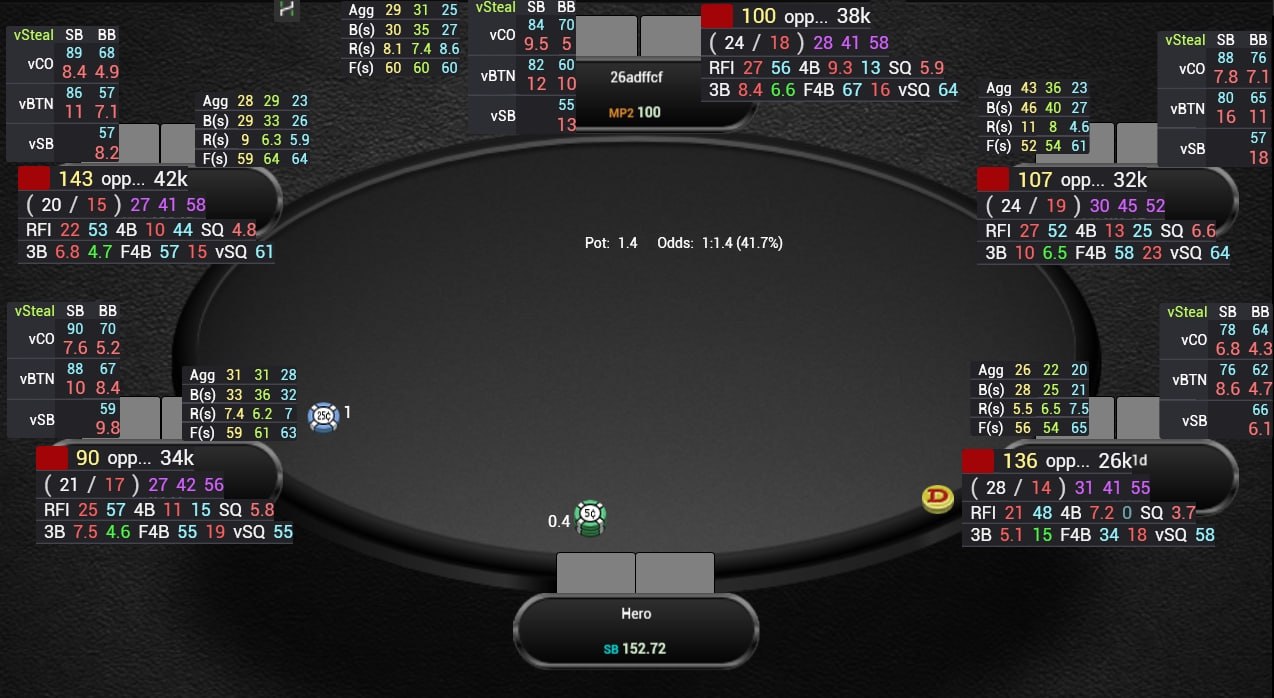 👍 Префлоп-статы «Pos vs Pos» после 1,000 рук на наиболее важные статы.