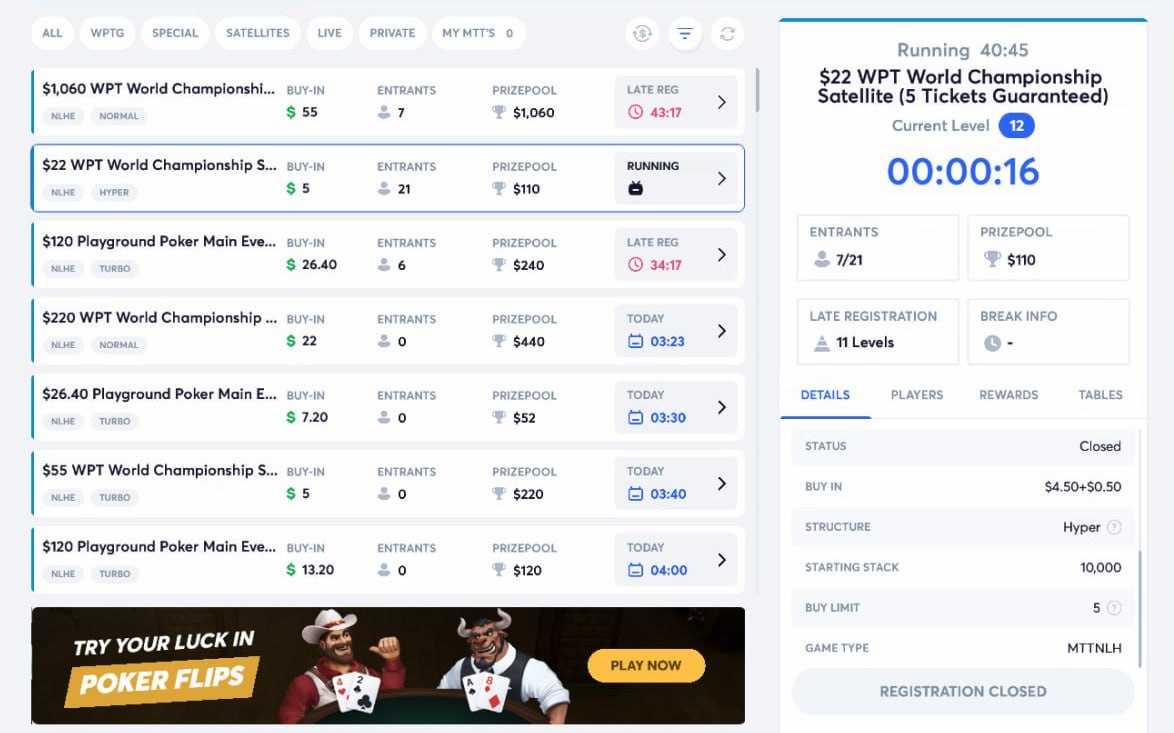 Билеты WPT действуют 14 дней, $110 Sunday Slam — 30 дней с момента получения.