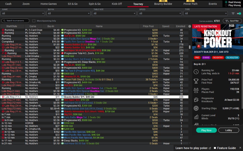 📜 Расписание. Анонсировано несколько сотен нокаут-турниров по холдему, омахе и шортдеку с бай-инами от €1 до €1,000.