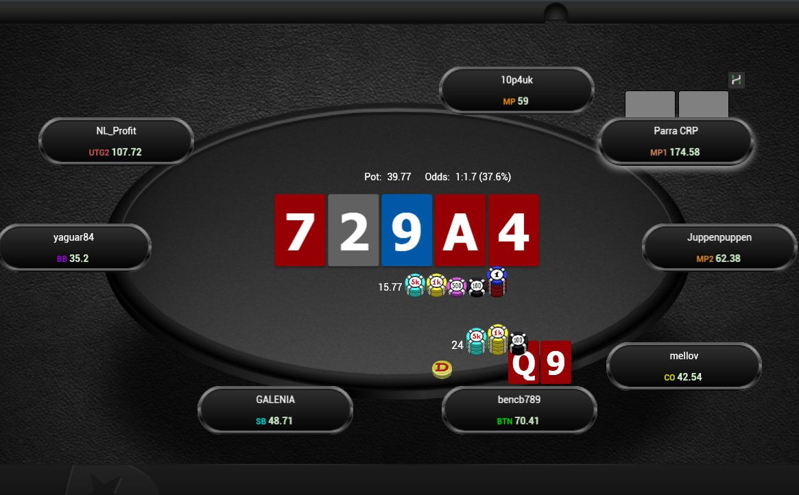 9♠️9♥️ на Т♥️7♣️6♦️ — 50% ставок. А если на флопе флеш-дро — стандартный чек.