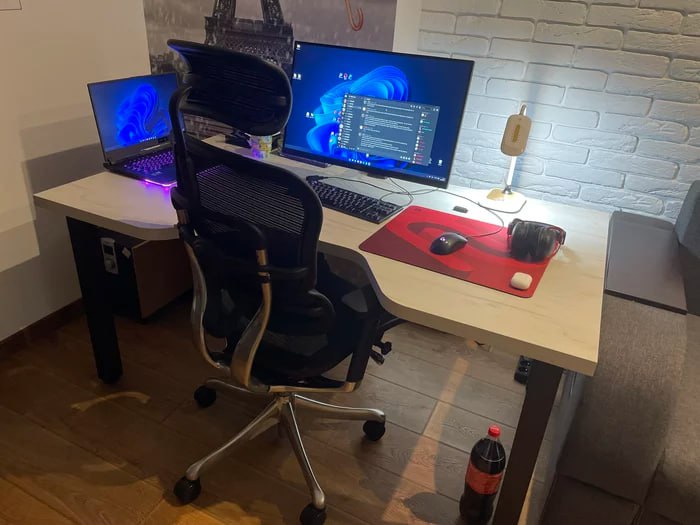 🪑 Кресло и стол. Кресло должно быть «с максимальным количеством регулировок», чтобы его можно было настроить под себя. У стола тоже высота должна хотя бы минимально настраиваться, а еще важно хорошо представлять, где он будет стоять — от этого зависит выбор размера.