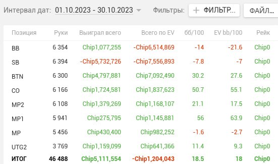 👍 EV/BB — более объективный показатель. В нем минимизирован фактор удачи: если вы выставились плюсово, а оппоненту повезло, получите «зеленые» циферки в базу. Иметь положительный ROI при плохих винрейтах можно (до поры до времени), наоборот — куда реже.