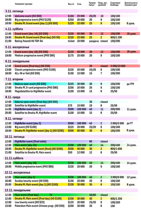 В расписании серии 333 турнира по холдему, PLO и хай-лоу играм (стад, омаха), многие пройдут в трех категориях бай-инов: Low, Medium и High.