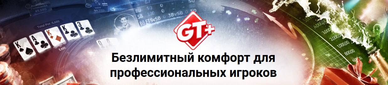 💪 GT+. Топовый сервис для покер-про. Если регулярно играете кэш от NL/PL10 или спины, мы предложим лучшие условия в любом руме или приложении. Повышенный рейкбек, платный софт в подарок, кэшауты без комиссии и многое другое.