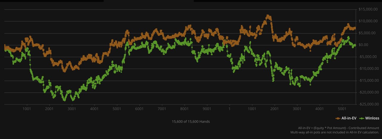 🔥 Краем глаза видел, хиро фиш с NL100. В 2023-м на NL50 и NL100 KGB911 отыграл почти 1,000 часов с винрейтом 12 (!) ББ на 100. Теперь копит $15,000 банкролла для NL200. При этом он говорит, что совсем не изучал теорию (читатели остроумно советуют и не начинать, чтобы не сломать винрейты).