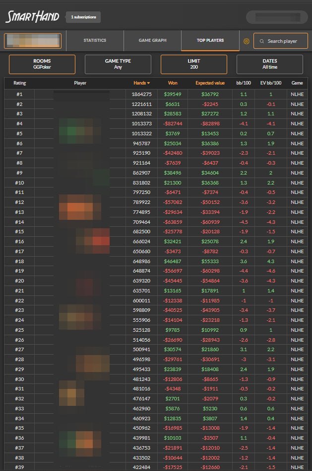 🗣 «Знаете, что GG не хочет вам показывать на сайтах вроде SmartHand? То, что почти все регуляры играют в минус до рейкбека. Я открываю статистику регов NL1K — и вижу только одного (!) человека, который показал больше 2 ББ на 100 рук на приличной дистанции. А всё почему? Да потом что рейк там почти 8 ББ на 100 рук — в 4 раза выше, чем в других румах.