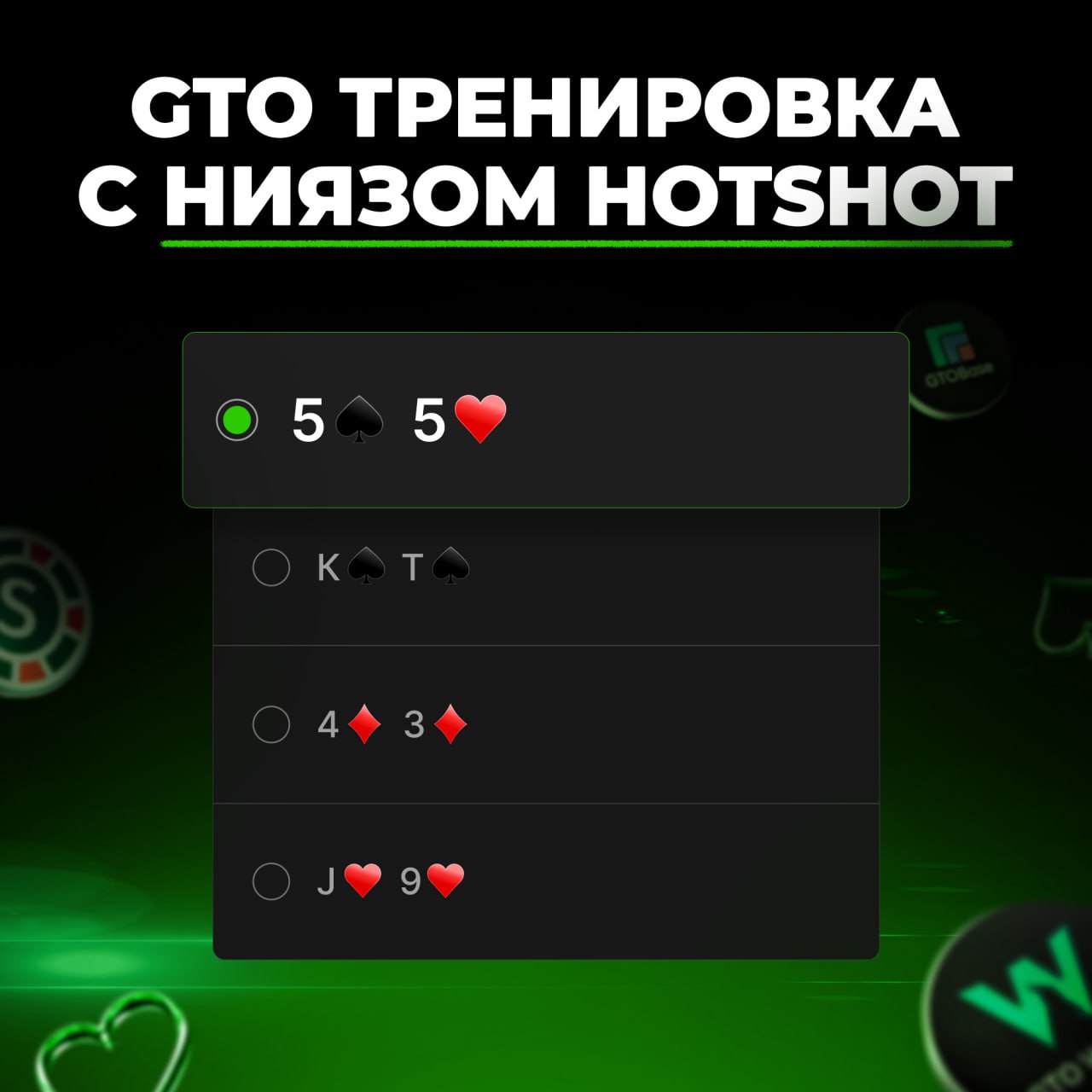 Все варианты набрали по 25%. А правильный ответ — 5♠️5♥️. Вот как это объяснил Нияз: