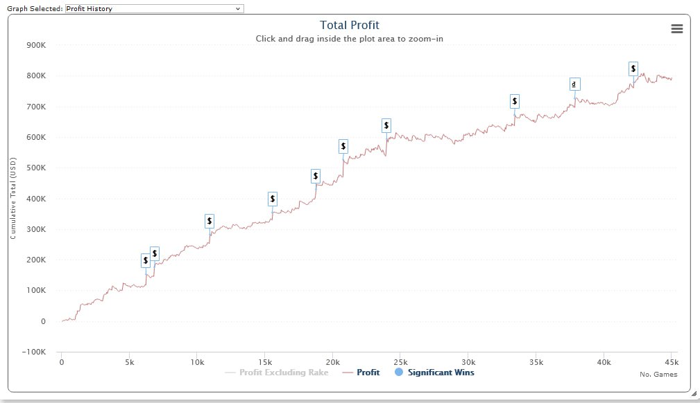 🤷♂️ МТТ — штука дисперсионная. Поля большие, серьезные деньги получить можно только за топовые места на финалках. Так что даже у профессионалов графики часто выглядят так: большой занос, потом просадка, потом опять занос и опять просадка… Это и нестабильный доход, и явно очень стрессовая жизнь. Но это не единственный путь в МТТ.