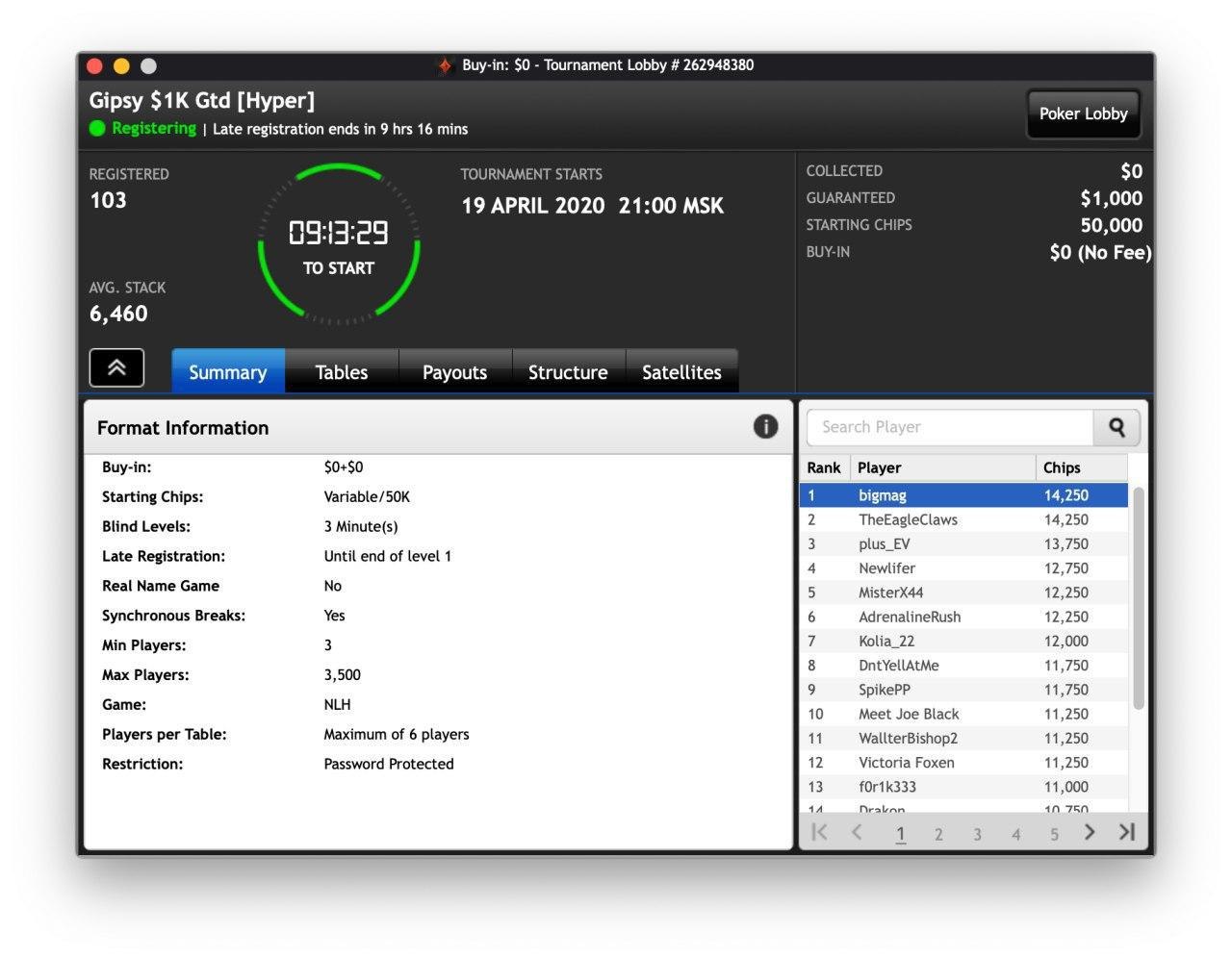 В течение апреля GipsyTeam проводит розыгрыши для игроков partypoker: каждую неделю мы разыгрываем $500 для МТТ-игроков, $500 для игроков в спины, $1,500 для кэшевиков и еще $1,000 во фриролле для всех.