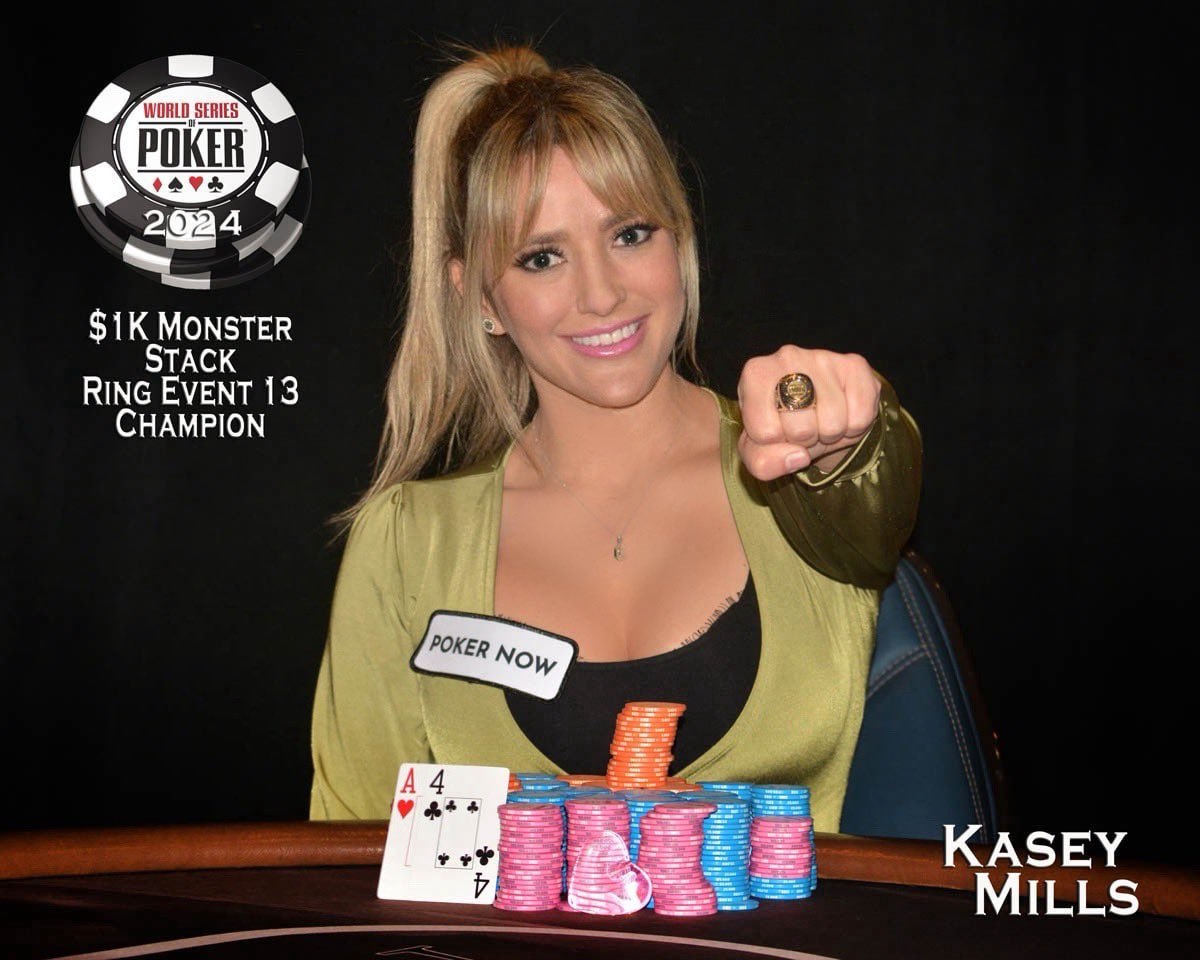 Неделю назад эту же тему поднимала покеристка и комментатор Кейси Лин Миллс (на фото внизу). В этом сезоне она завоевала два перстня: один турнир играла от бэкера, второй от себя. Кейси провела опрос: почти 60% из полутора тысяч ответивших выбрали вариант «на фриролл у бэкера доли нет». Но в комментариях мнения разделились: например, Мэтт Аффлек сказал, участие во фриролле — часть EV игры в турнирах WSOP, и у бэкера должен сохраниться процент 🤔