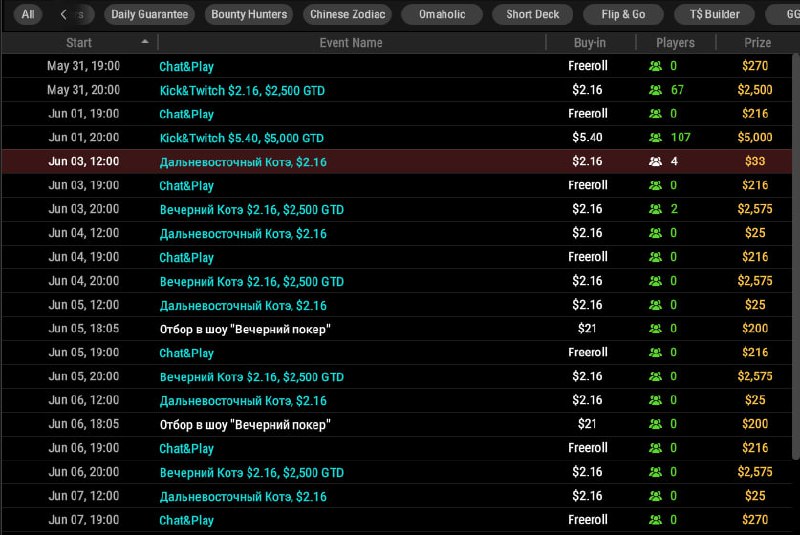 На просмотрах покерных стримов теперь можно заработать! С 3 июня в МТТ-лобби ПокерОК в разделе «Приватные» доступны турниры «Котэ» и бай-инами от $2.16, все в формате PKO. Гарантия — $90,000 в месяц. Бай-ины можно платить напрямую или получать в обмен за баллы, накопленные во время просмотра стримов на YouTube, Twitch и Kick ☝️