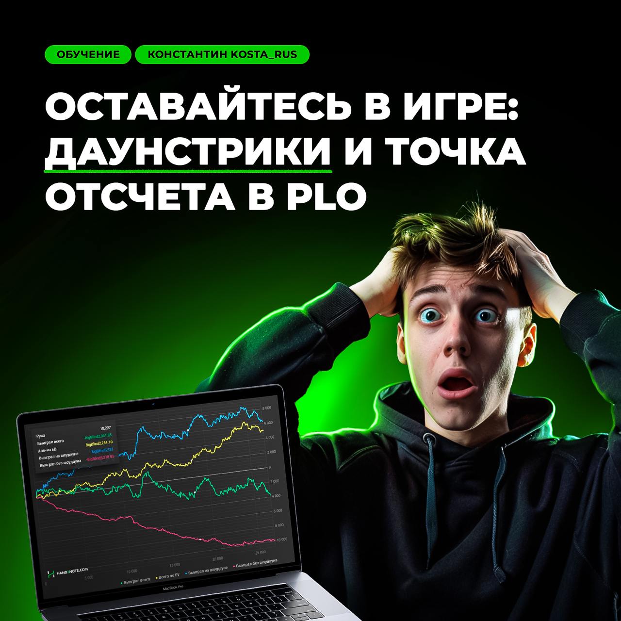 Если хотите тренироваться у Константина и других сильных регуляров, подавайте заявку в GreenLine. Если уже плюсуете на NL/PL25 и выше — в основной состав школы. А если застряли на микролимитах, записывайтесь в бесплатную группу GreenLine Junior, там есть группа для омашистов.