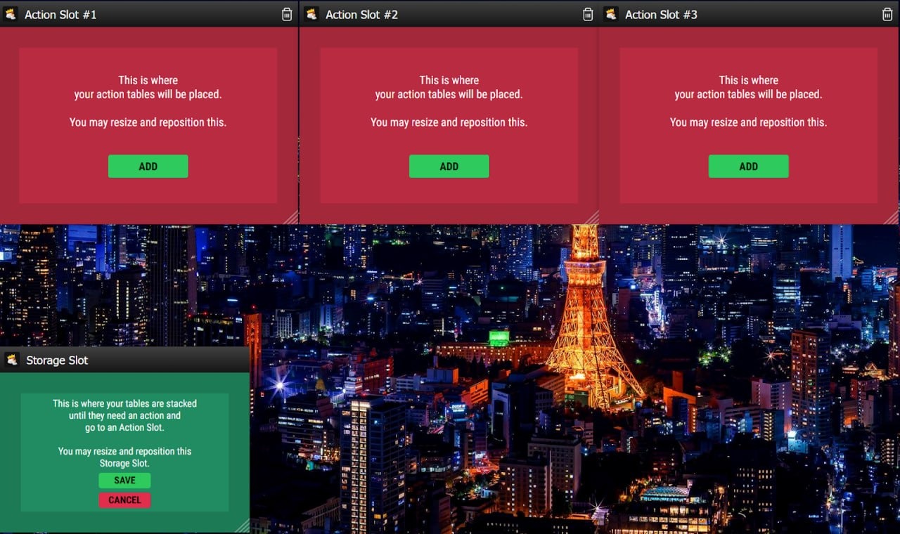 - Storage Slot: стопка для всех неактивных в данный момент столов