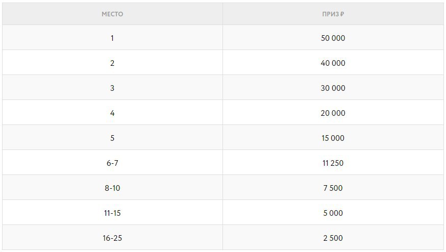 - Задания и таблица лидеров на 250,000 рублей.